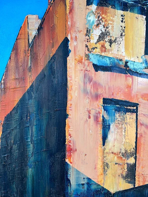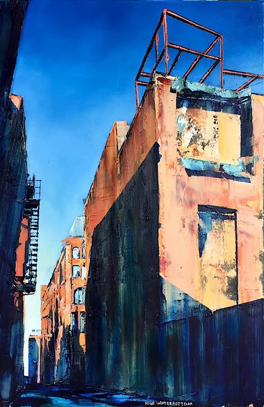I decided many years ago to try and paint with honesty and sincerity. I grew up (and still live) in Oldham in Greater Manchester, a town historically populated with terrace houses, factories and mills. From an early age I recollect on hot summer days how hot the bricks would get in the burning sun on the gable ends of buildings, and how they would cast shadows from one building to the next. Taking the maxim ‘paint what you know’ to heart, I took this largely industrial and urban landscape as my subject matter.