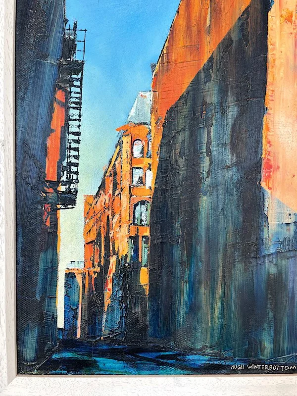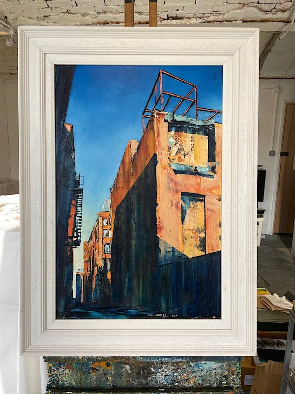 So I decided to paint the cityscapes and townscapes of the north of England. I started in the centre of Manchester because I found the mix of new and old buildings exciting and fascinating.